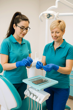 Du verantwortest Aufbereitung, Sterilgut und Hygieneprozesse, sorgst für reibungslose Abläufe und behältst Material & Behandlungs-Vorbereitung im Blick.